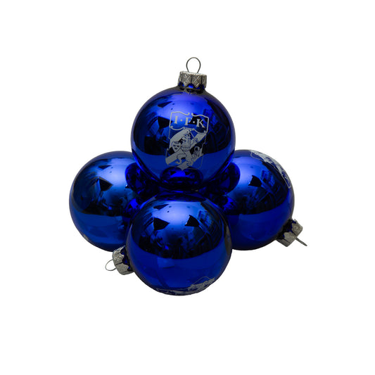 Fyra julkulor med IFK Göteborgs glimrande emblem i silver. Perfekta för det blåvita julfirandet.