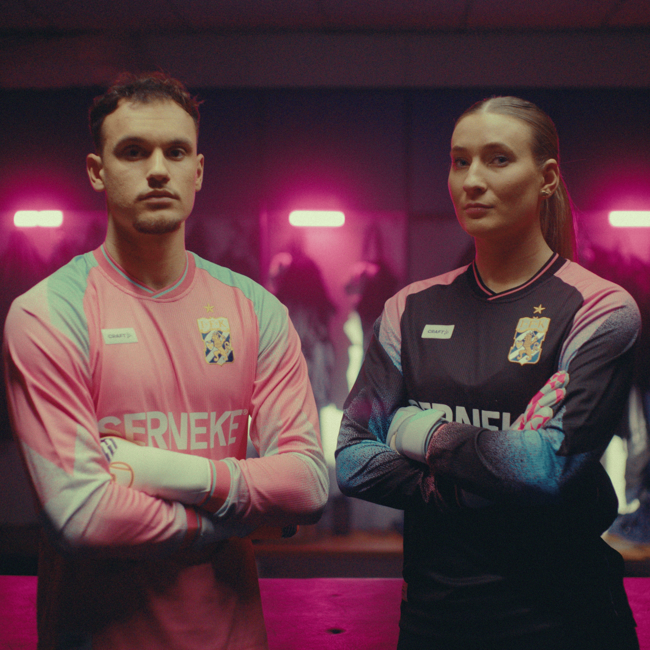 Allt började med ett möte – att lyssna på målvakterna, förstå deras vardag och deras vision. Snart stod det klart att dam och herr bar på olika behov, olika uttryck. Där föddes två tröjor med egna identiteter: den svarta som damernas hemmatröja, den rosa som herrarnas signatur i målet.