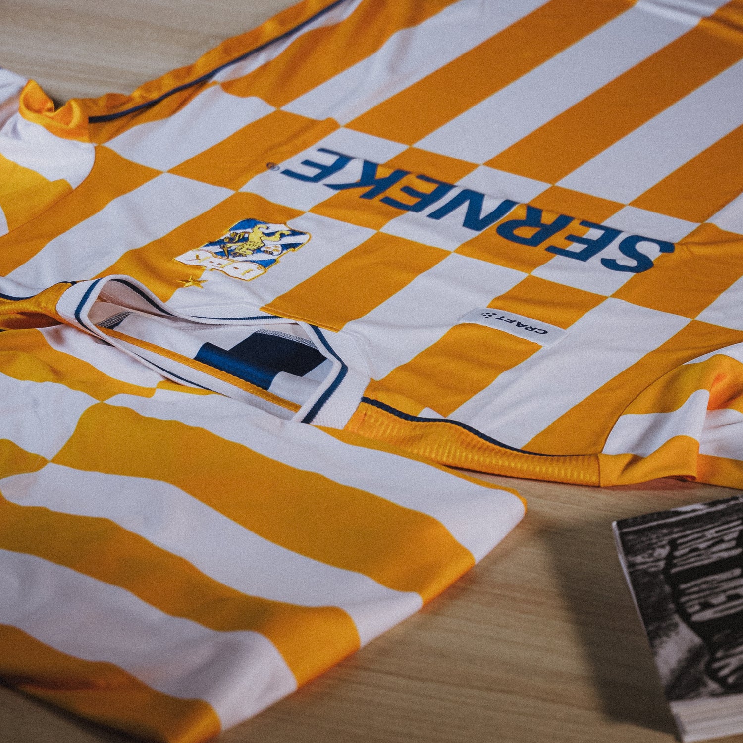Designen hämtar sin rytm från klubbens själ – där blått, vitt och gult inte bara är färger, utan rörelse, puls och arv. Ränderna bryts och möts i ett uttryck som speglar både tradition och förnyelse.