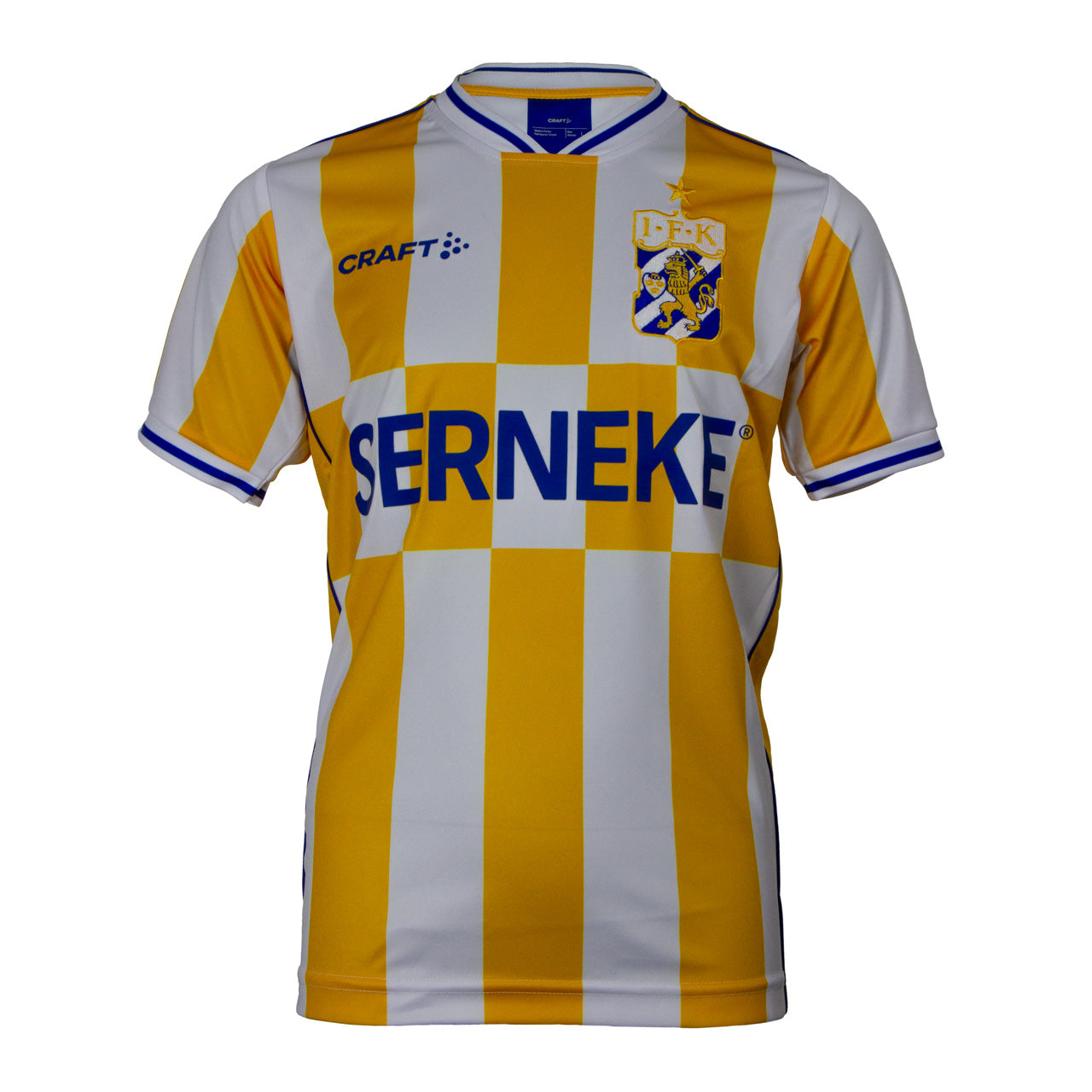 Den nya tredjetröjan är här och skäms inte för sig. En lejongul färg möter vitt i ett randigt mönster där rektangulära rutor bryter av på mitten. De klassiska blåvita ränderna är dock aldrig långt borta. Likt den vita bortatröja som släpptes förra året bjuder årets tredjetröja på ett blåvitrandigt drop och en invändig nackdetalj. Tröjan toppas med blå detaljer, skimrande axel- och sidopaneler, ribbade kragar och ett broderat klubbmärke.