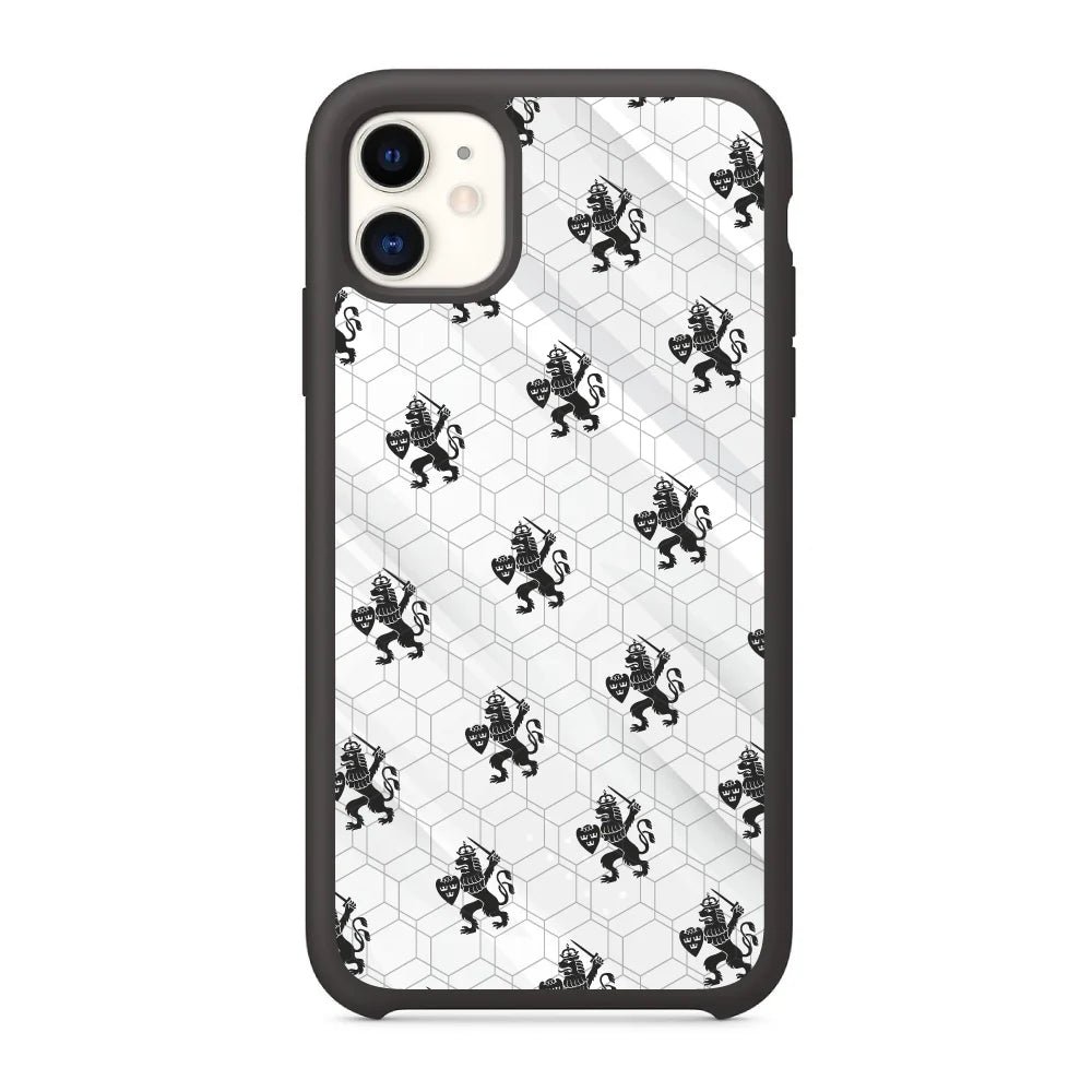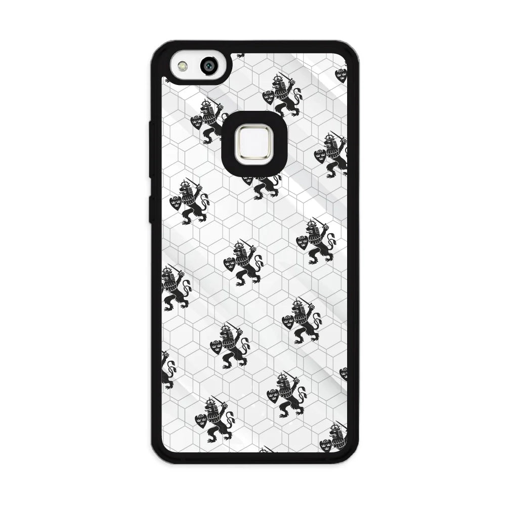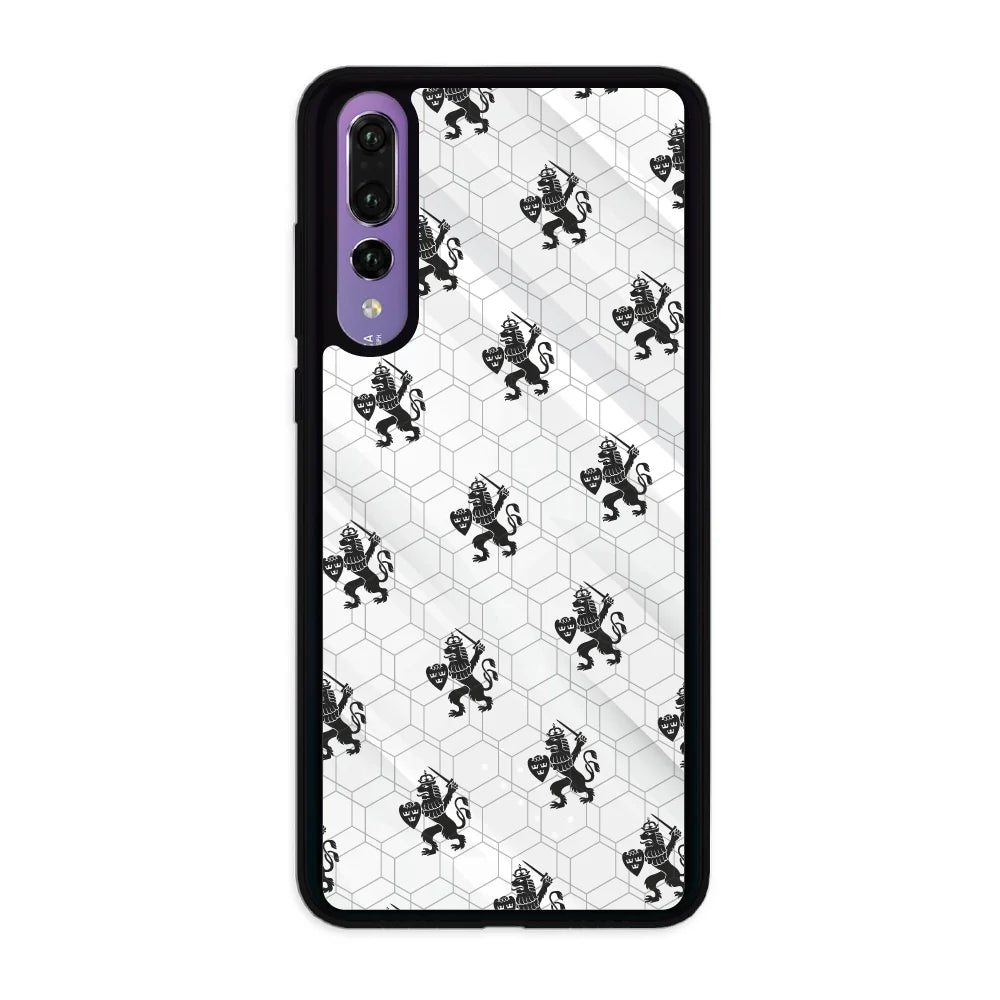 3D-skal med svarta lejon på vit bakgrund, den innovativa och patenterade 3D HEX-teknologi kombinerar skydd på hög nivå med en exklusiv tredimensionell effekt för den perfekta blandningen av funktionalitet och estetik.