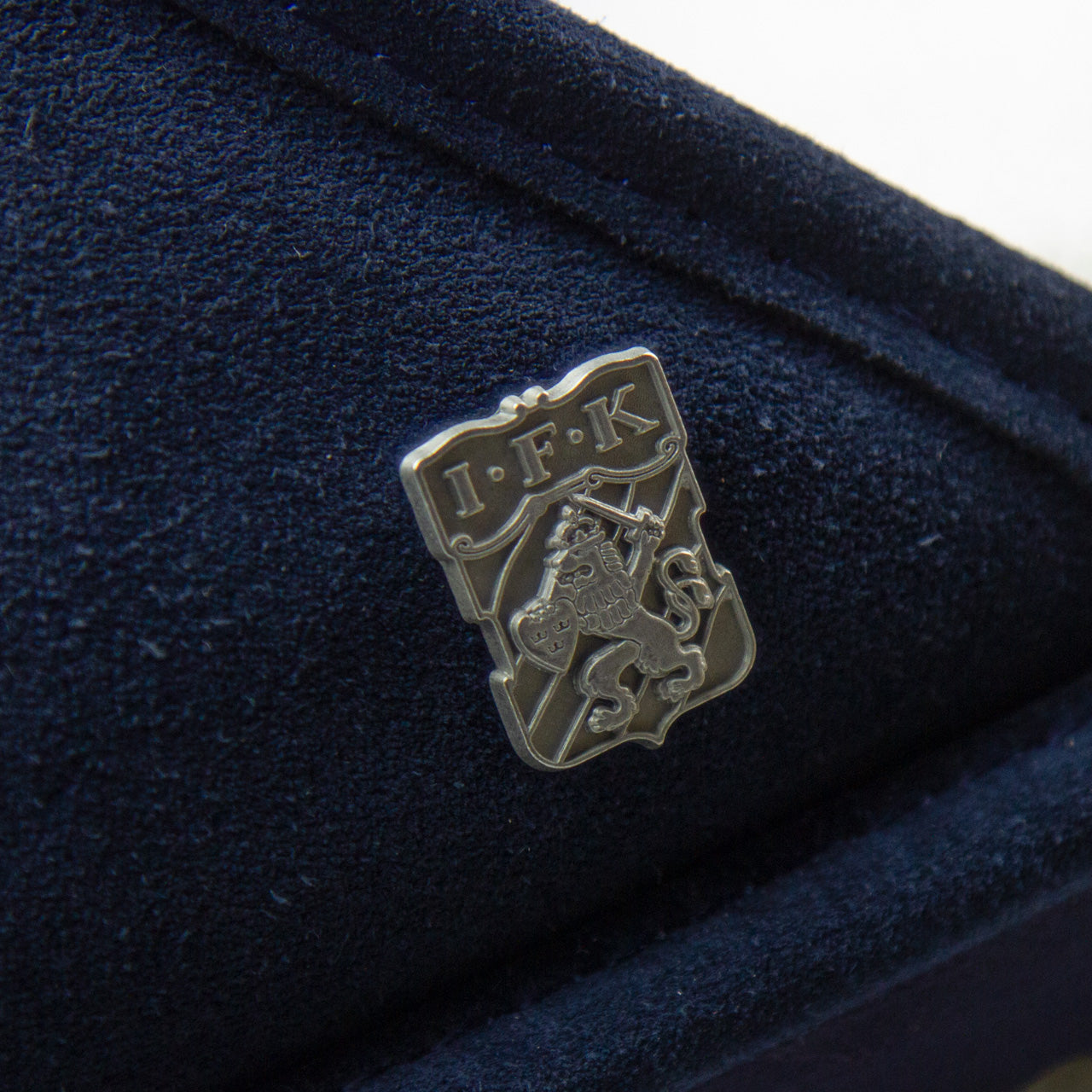 Klassiska tofflor i mocka med IFK Göteborg-emblem i metall på sidan.