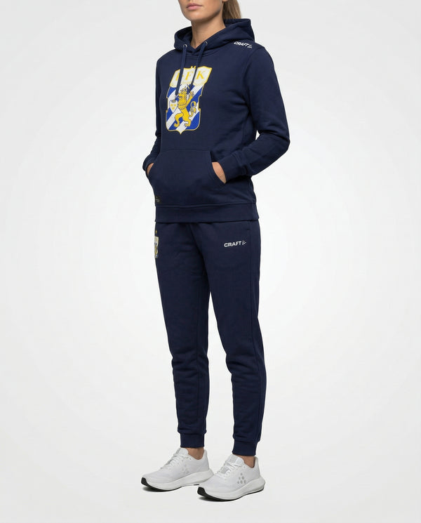 Tracksuitbyxa i retrodesign i blått med vita detaljer, broderat klubbemblem och broderad Craft-logga. Plagget är ofodrat och tillverkat i ett lätt material som ger god rörelsefrihet.