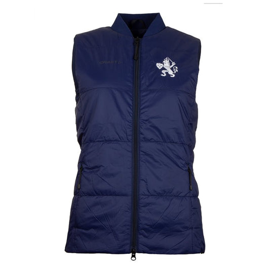 Craft Lättdunsväst Lejon Dam är en mångsidig väst med tunn vaddering som är perfekt för snabb anpassning till skiftande temperaturer och värmebehov. Använd ensam eller bär under rocken för ett extra värmande lager. Västen har ett yttermaterial av återvunnen polyamid och vaddering av återvunnen polyester. Plagget har även två sidfickor och en mjuk, ribbstickad krage.