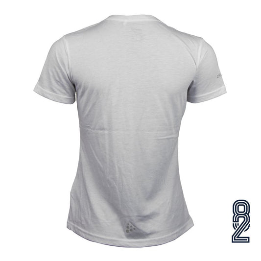 Mångsidig gråmelerad t-shirt i dammodell, gjord i ett mjukt material med bomull och viskos som ger perfekt balans mellan komfort och funktion. Enkelt stilrent tryck i svart på vänster bröst. Vit Craft-logga på vänster axel och längst ner baktill samt tygpatch i höger nederkant framtill.