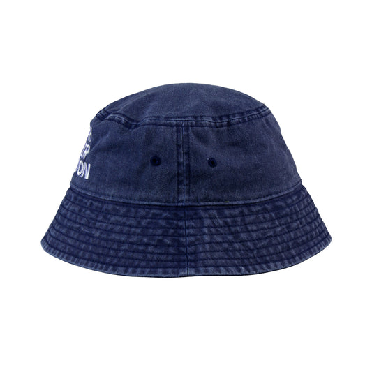 Den storsäljande kepsen finns nu i bucket hat-modell! Fiskehatt i washed denim med broderad text "Snart Skiner Poseidon" framtill.
