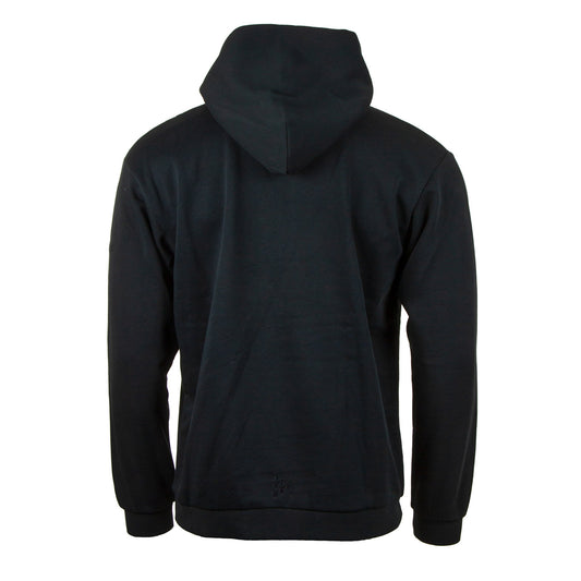 Klassisk svart huvtröja med trycket "Ett lag i Götet" på ryggen. Öppen, stor ficka framtill.
