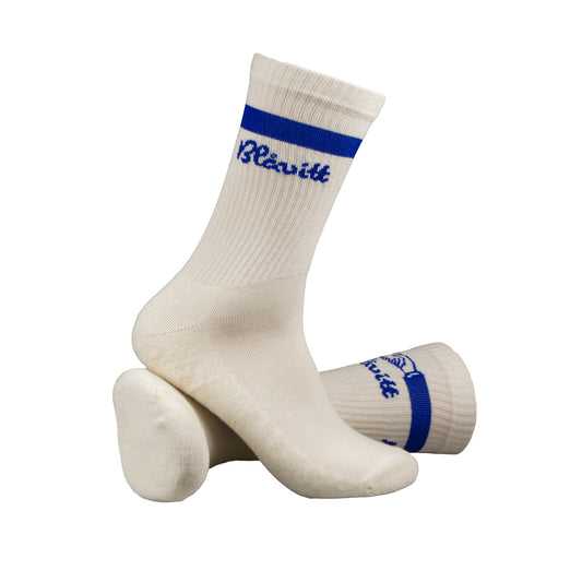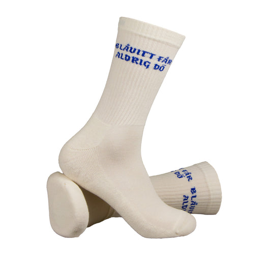 För dig som lever för klubben – och vet att Blåvitt är för evigt. Denna strumpa bär det klassiska slagordet "Blåvitt får aldrig dö" i tydlig blå text. Ett statement, från tå till hjärta.