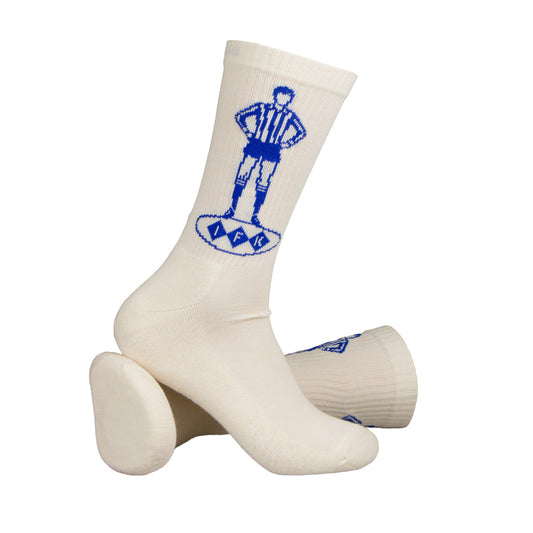 Visa var ditt hjärta hör hemma! Denna klassiska strumpa pryds av den ikoniska IFK-spelaren i blåvitt ställ, stående stolt på klubbmärket.