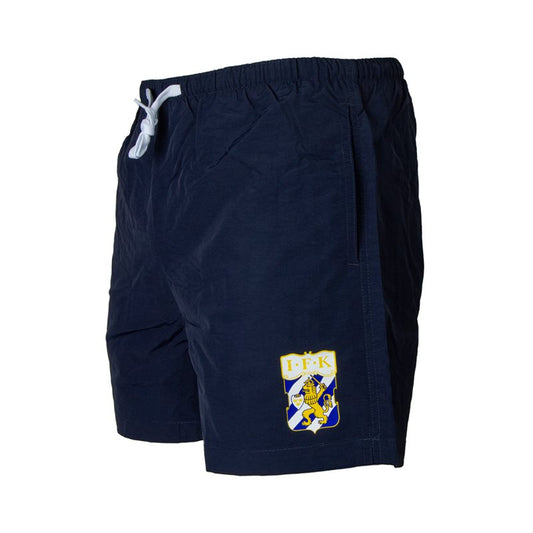 Marinblåa badshorts i klassisk herrmodell med tryckt klubbmärke på vänster ben. Badshortsen har mudd i midja med dragsko för individuell passform. Två öppna sidofickor och innerbyxa i mesh för extra bekvämlighet.