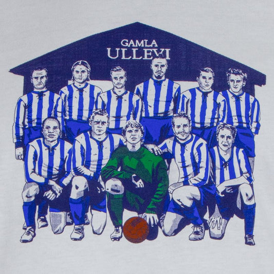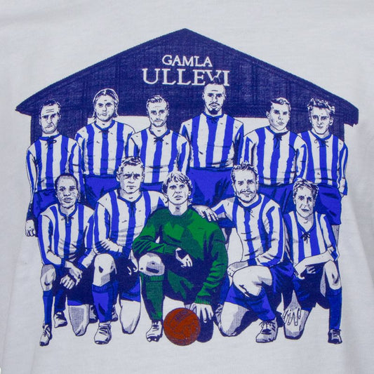 Vit t-shirt från Craft med print på bröstet föreställandes en lagbild av blåvita legendarer och spelare, bl.a. Bertil "Bebben" Johansson, Tobias Hysén, Marek Hamšík och Torbjörn Nilsson.