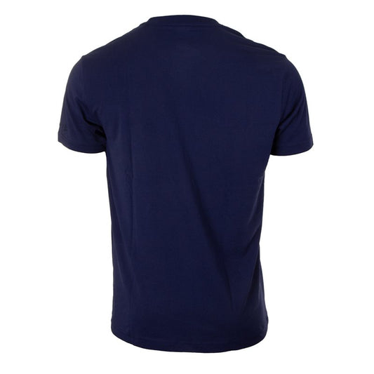 Mångsidig marinblå t-shirt gjord i ett mjukt material med bomull och polyester som ger perfekt balans mellan komfort och funktion. Stort tryck på bröstet av tre lejon i vitt, marinblått och gult.